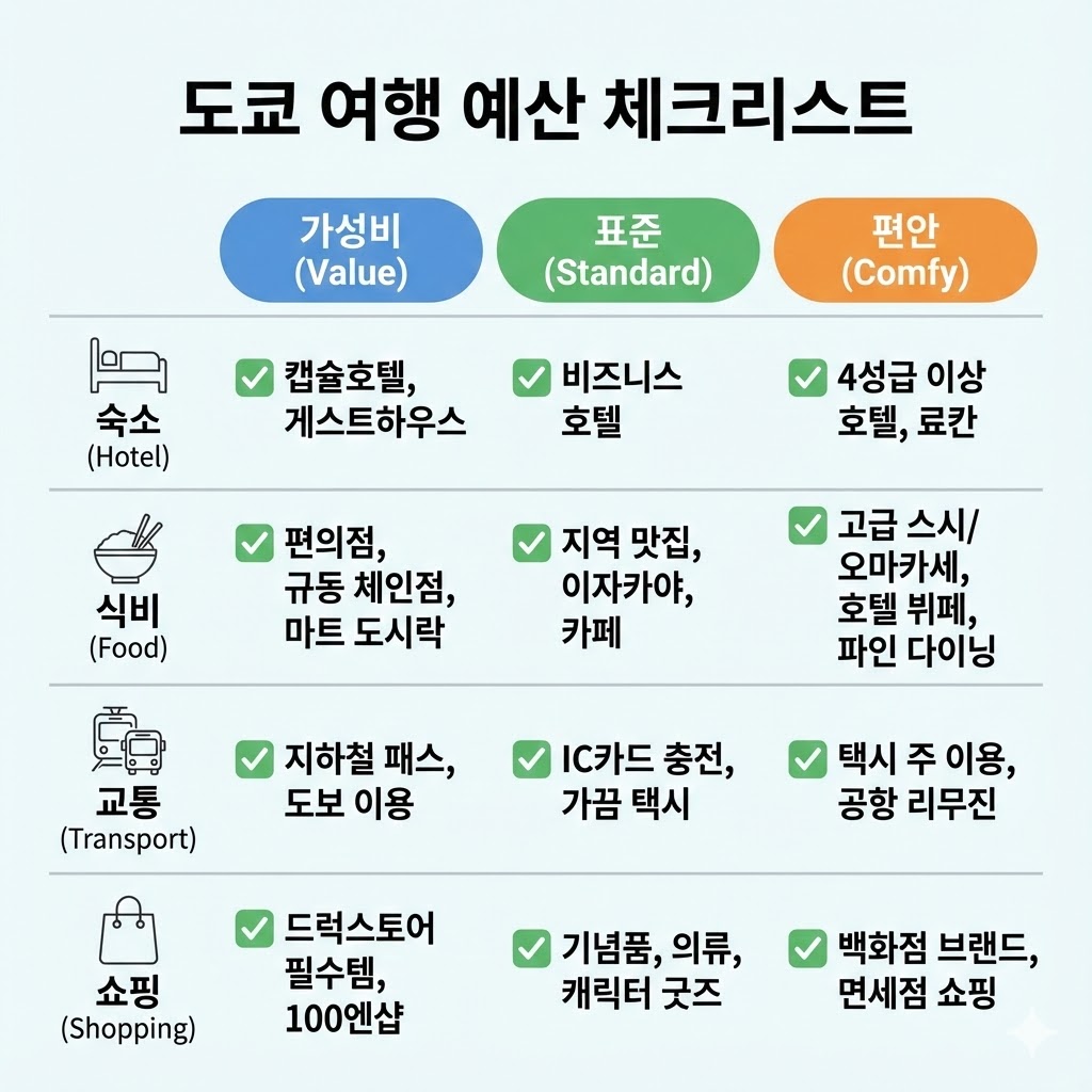 - 예산표로 한 번에 👉 도쿄 4박5일 경비(예산별 총정리)