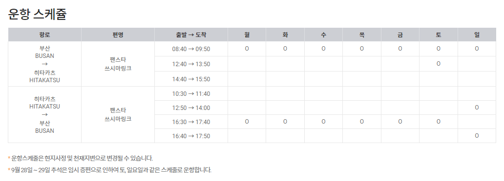 대마도 배편 운항 스케줄