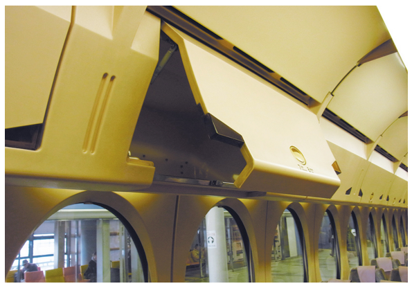 | 머리 위의 짐 수납함 각 좌석의 윗에 짐 수납함이 있어 기념품등 비교적 가볍고 작은 짐을 쉽게 보관할 수 있습니다. |