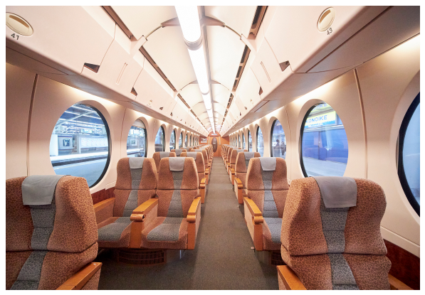 | 슈퍼시트 5호차와 6호차는 시트피치 1200mm, 시트 폭 485mm 3열 시트로 구성되어, 여유있고 편하게 이동 할 수 있습니다. |