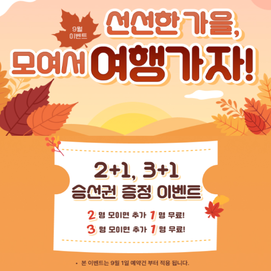 가을 여행을 준비하시는 분이시라면 놓치지말고 할인혜택 꼭 잡아보세요!!!
