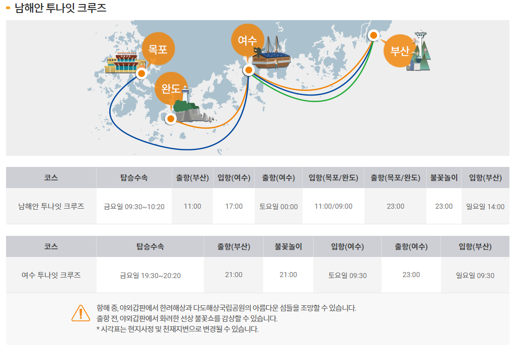 여행 중에는 안전을 위해 승무원의 지시를 따르고, 승선 당일 건강 상태에 주의해 주시기 바랍니다. 불가항력적인 상황이나 정부 방역 지침에 따라 운항 일정이 변경될 수 있으니, 여행 전 반드시 확인해 주세요..