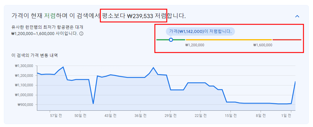 구글 항공권 최근 60일 이내 가격변동 확인 가능
